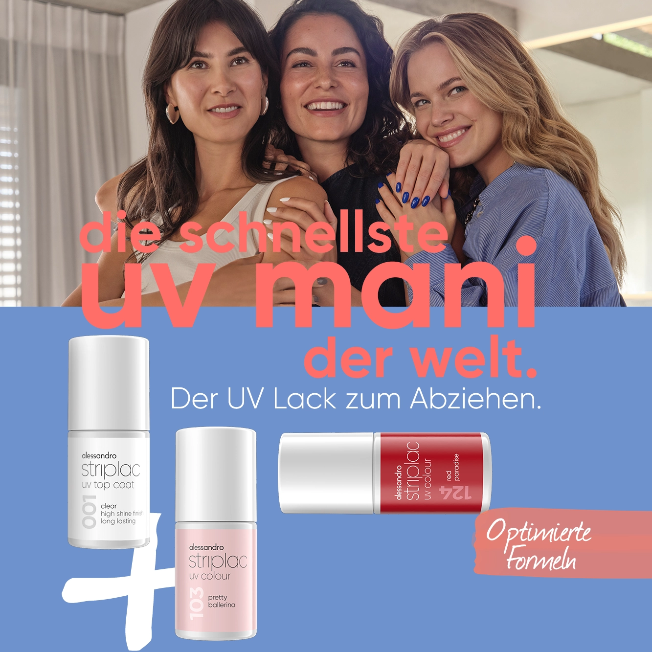 Eine schonende Alternative zu Shellac und herkömmlichen UV-Nagellack ist unser Striplac, ein UV-Nagellack, der besonders lange hält. Er funktioniert, ohne dass Du Deine Nägel anraust und lässt sich unkompliziert rückstandslos entfernen. So musst Du keine Lackreste vom Nagel feilen. Bei der Anwendung von Striplac bleiben Deine Nägel unversehrt und gepflegt – und dank der schonenden Entfernung werden sie nicht brüchig.