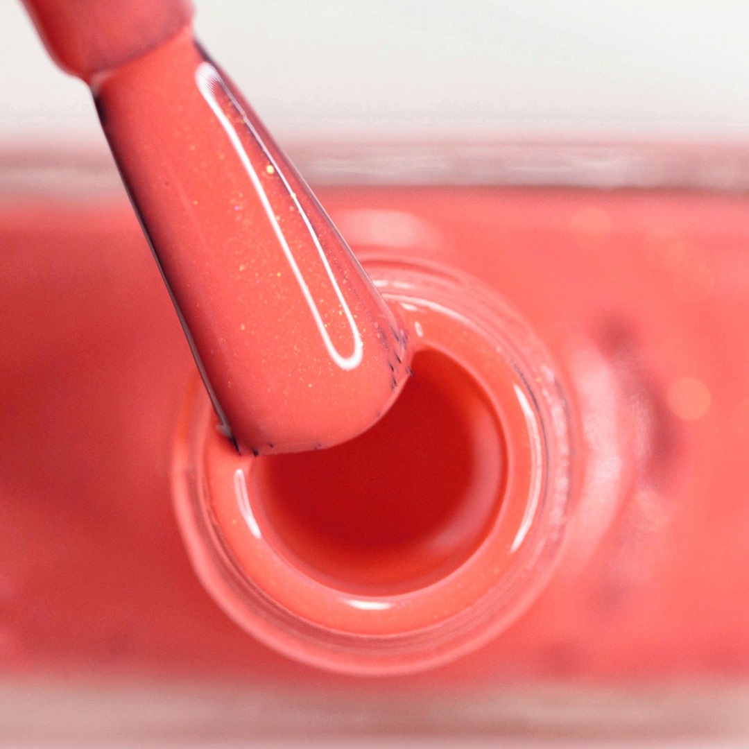 Ce rouge corail crée un look ludique, girly et légèrement frais sur les ongles.