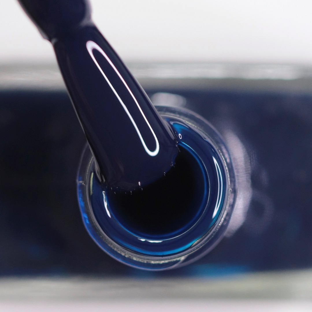 Le vernis couleur Urban Denim est couvrant dès la première application et le pinceau s'adapte à la forme de l'ongle.